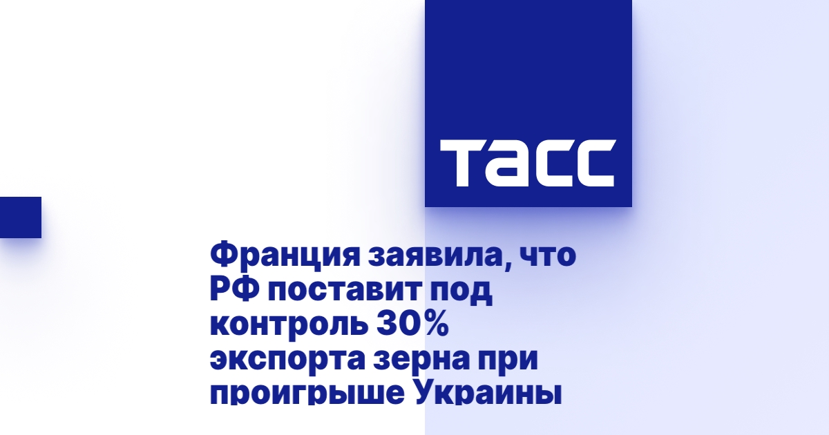 ПАРИЖ, 20 января. /ТАСС/. Россия сможет взять под свой контроль 30% мирового экспорта зерна в случае поражения Украины. Такое мнение выразил глава МИД Франции Стефан Сежурне в интервью газете Le Parisien.