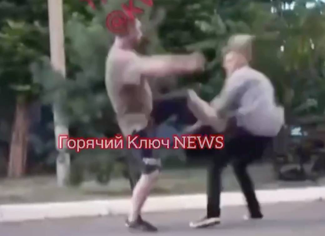 На Кубани прохожий напал на уличных музыкантов и в результате остался без уха. Видео © Telegram / Горячий Ключ News