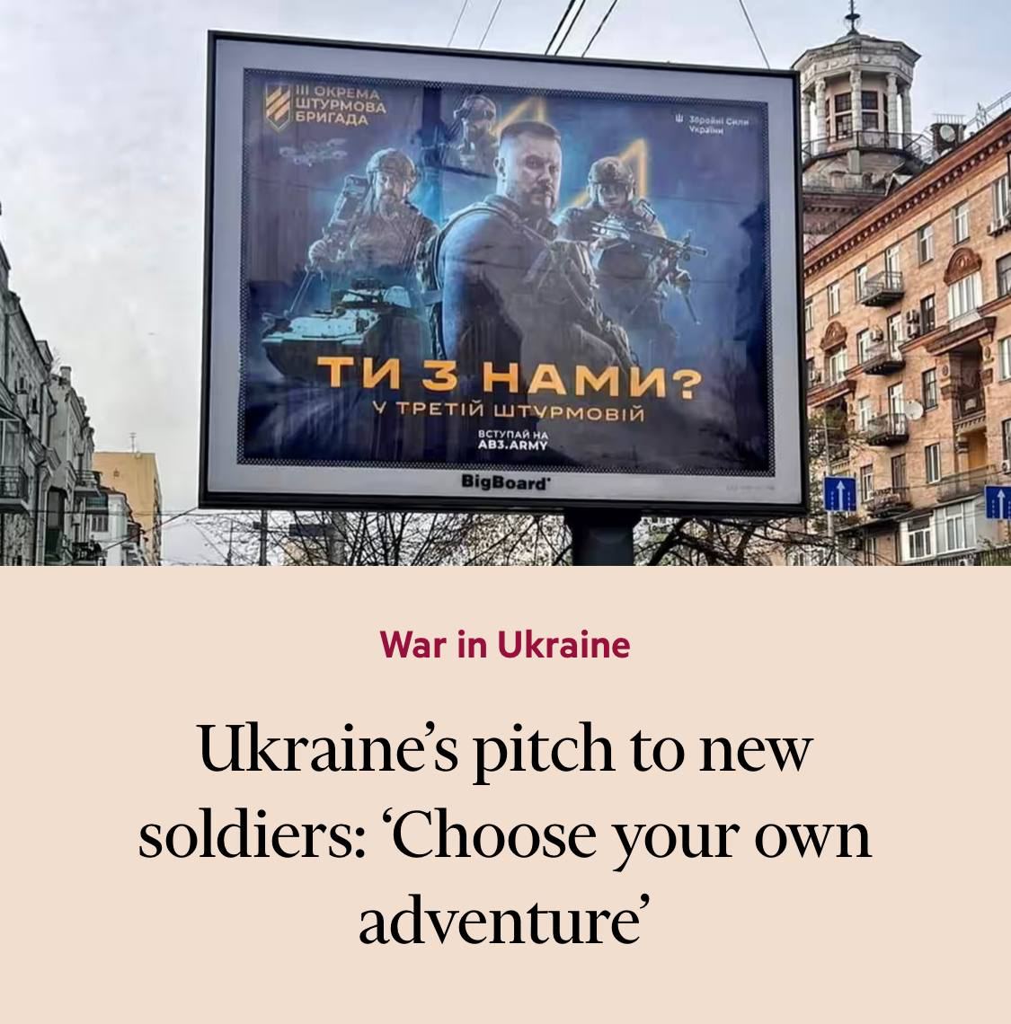 «Предложение Украины новым солдатам: «Выбери себе приключение» — с таким заголовком вышла статья FT.