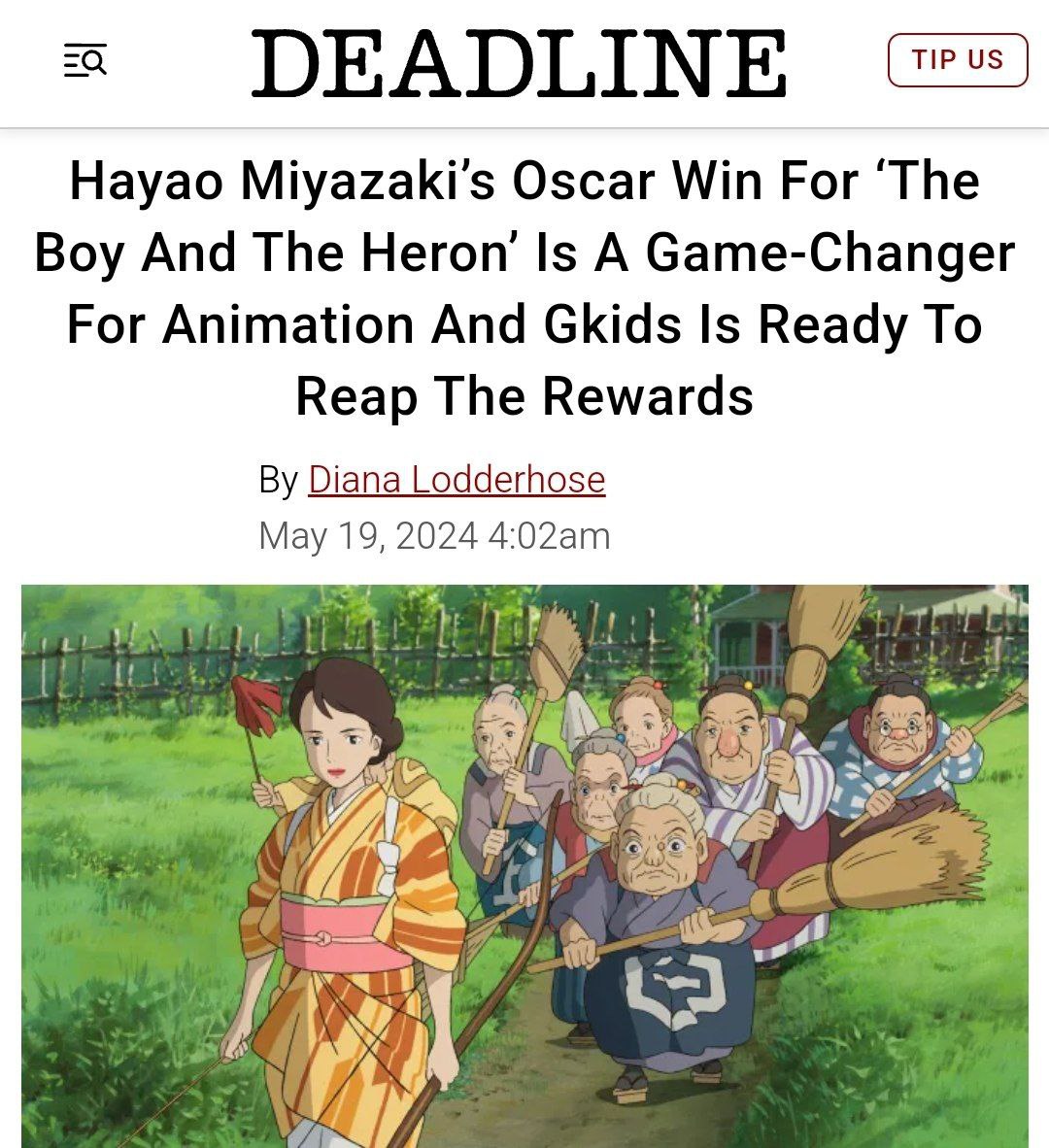 Победа «Мальчика и птицы» Хаяо Миядзаки на Оскаре изменила восприятие анимации, — Deadline