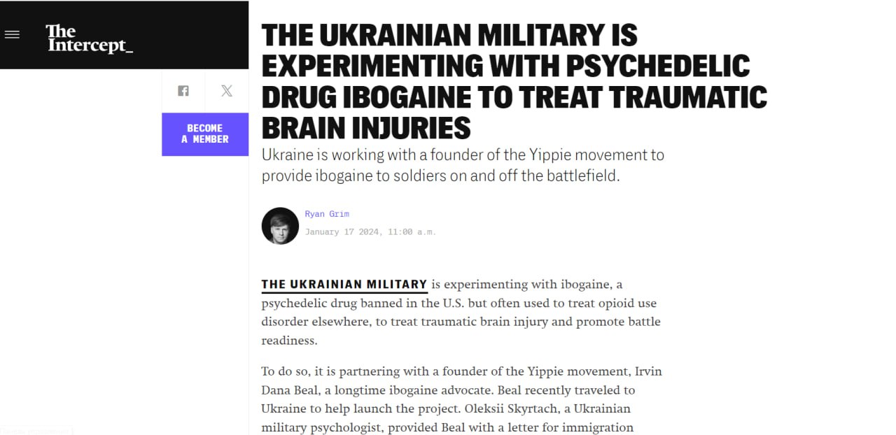 Украинские военные экспериментируют с ибогаином, запрещенным в США психоделическим препаратом. В других странах его используют для лечения расстройств, связанных с употреблением опиоидов и для лечения черепно-мозговых травм.