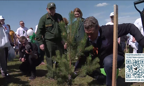 Триста саженцев европейской сосны высадили в виде геоглифа «Победа» в селе Горицы Кирилловского округа.