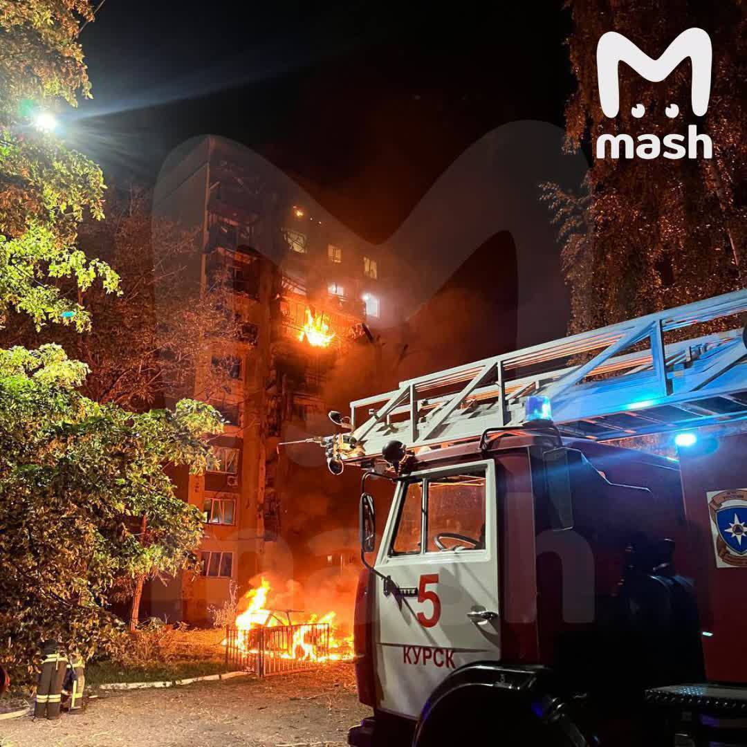Всушный беспилотник попал в жилую многоэтажку в Курске. Предварительно, есть пострадавшие.