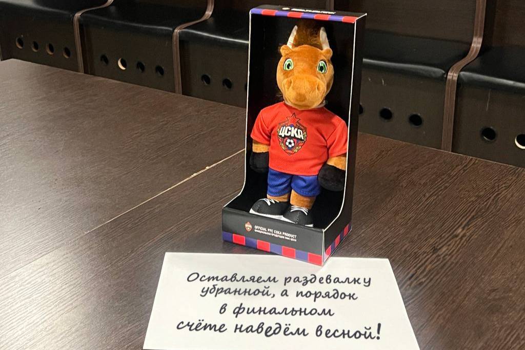 "Оставляем раздевалку убранной, а порядок в финальном счёте наведём весной!" — гласит послание "армейцев", дополненное брендированной игрушкой.