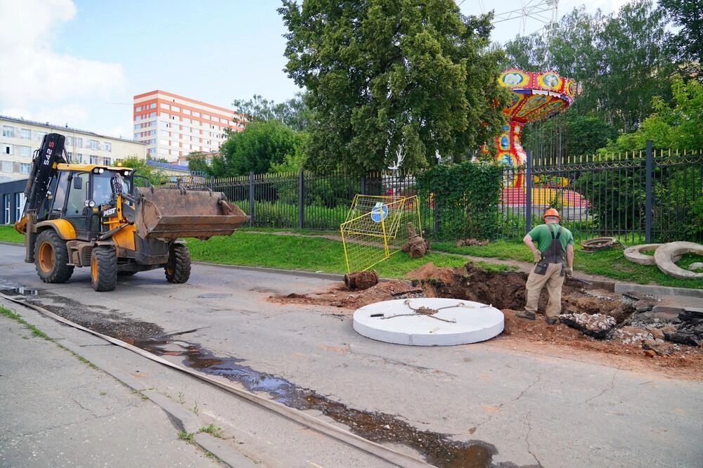 В Ижевске на улице Милиционной ремонтируют главный канализационный коллектор