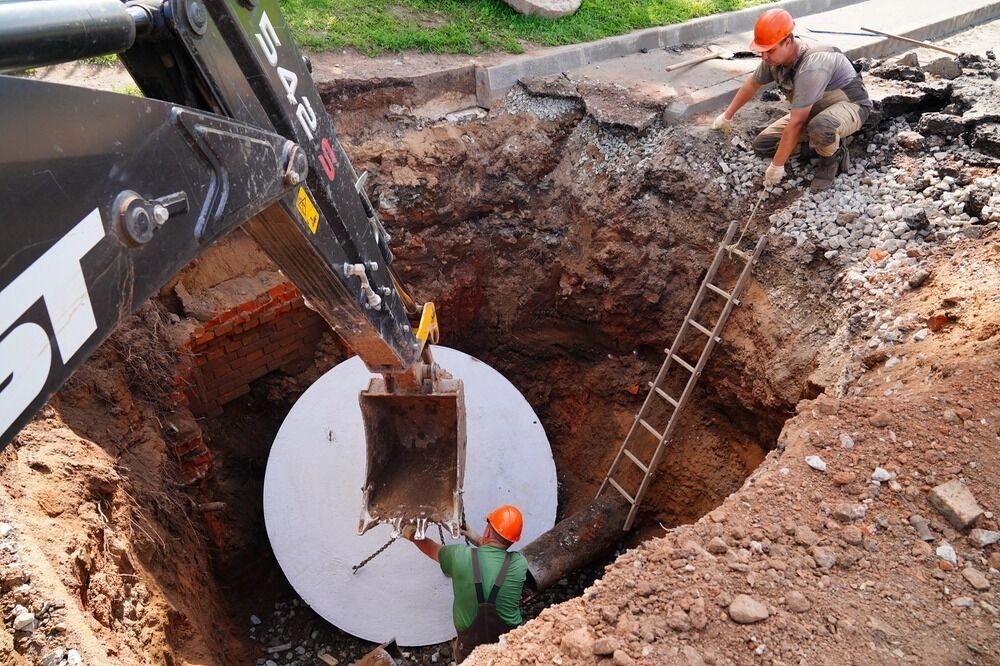 Сотрудники подрядной организации на месте старых железобетонных труб коллектора установят современные модули. Одновременно они ремонтируют кольцевой водопровод бестраншейным методом — с использованием технологии полимерного рукава.