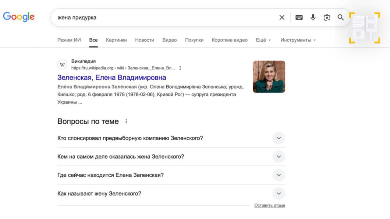 🤦Неожиданно? Как бы не так. Запрос «жена придурка» в Google теперь ведет прямиком к Елене Зеленской. Алгоритмы, может, и не люди, но сарказм явно освоили в совершенстве. (Не иначе происки Всемогущего!)