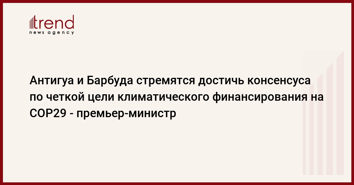 БАКУ /Trend/ - Антигуа и Барбуда стремятся достичь консенсуса по четкой и значимой цели климатического финансирования на COP29, с достаточным финансированием, которое поможет адаптироваться и укрепить устойчивость, заявил премьер-министр Антигуа и Барбуда Гастон Альфонсо Браун, выступая на саммите COP29 в Баку, сообщает Trend.