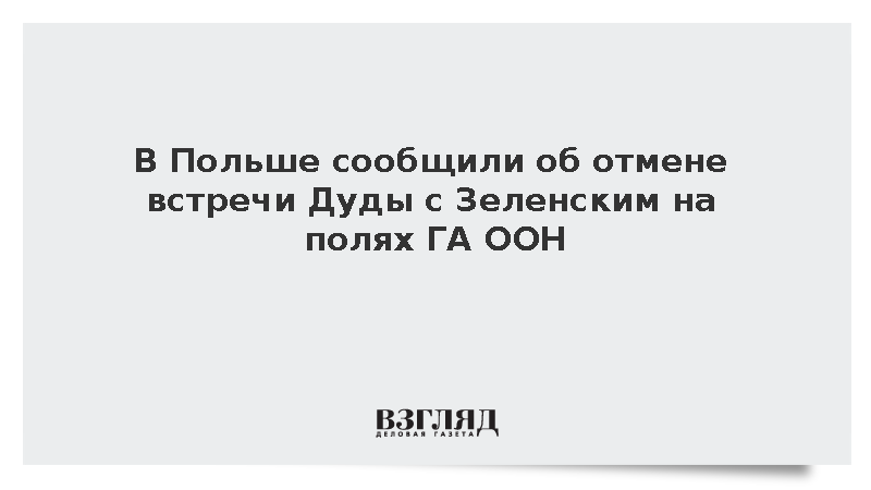 Встреча президентов Польши и Украины Анджея Дуды и Владимира Зеленского на полях проходящей в Нью-Йорке сессии Генеральной Ассамблеи (ГА) ООН отменена, сообщило польское издание Rzeczpospolita.
