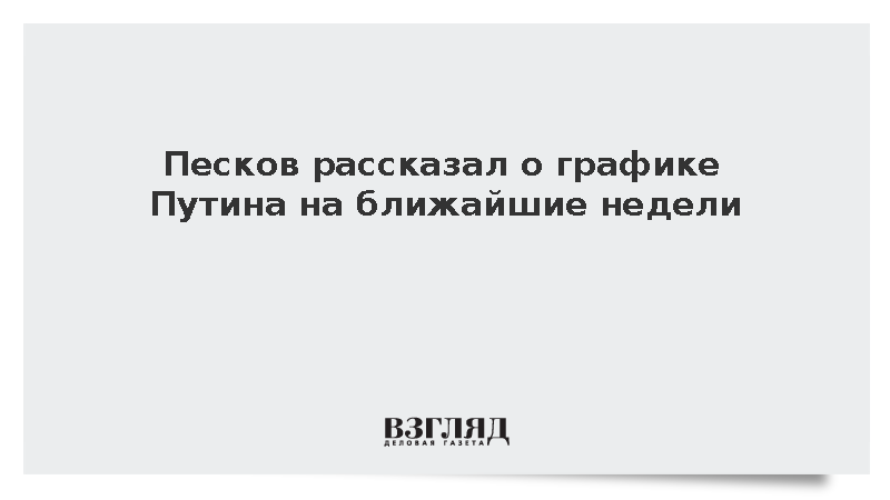 Рабочий график Путина в ближайшие недели не предусматривает поездок, сообщил Песков, передает ТАСС. После серии интенсивных поездок по регионам, президент проведет несколько недель в Москве, занимаясь внутренними делами.