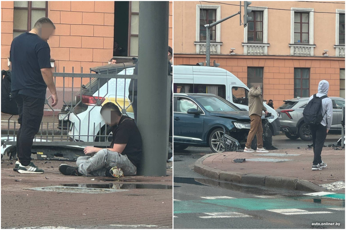 — По предварительной информации, сегодня около 15:00 водитель автомобиля Mercedes, двигаясь по улице Сурганова, вблизи перекрестка с проспектом Независимости при одновременном с автомобилем Volkswagen перестроении во вторую полосу не предоставил последнему преимущество и совершил с ним столкновение. От удара автомобиль Volkswagen вошел в неуправляемый занос и выехал на полосу встречного движения, где столкнулся с автомобилем Audi, — сообщила подробности столичная Госавтоинспекция.