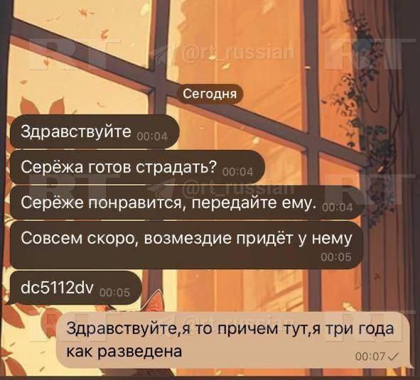◾️его бывшая жена Алёна рассказала RT, что получила уже десятки угроз от незнакомых людей (на скринах):