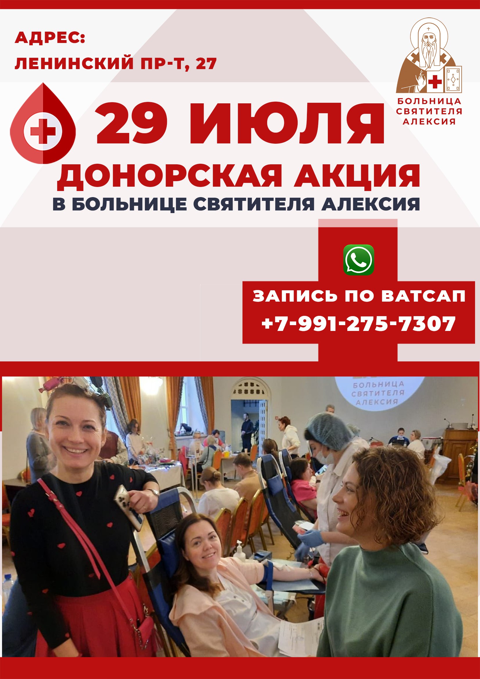 🩸 29 июля - очередная донорская акция в Больнице Святителя Алексия