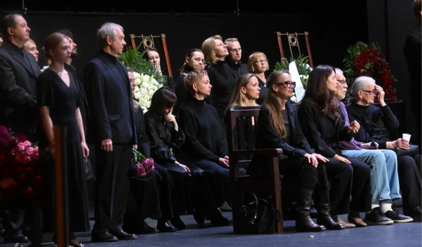 Проводить Владимира Александровича в последний путь пришла его 45-летняя жена Яна Соболевская. Одетая во все черное, она молча стояла у гроба и едва сдерживала слезы, принимая соболезнования. Поддерживали вдову ее близкие: старшие дети Владимира Александровича от прежних браков — сыновья Василий и Владимир. В зале также присутствовала вторая жена мастера Екатерина Беликова. Она сидела на лавке у гроба в черном пиджаке и брюках.