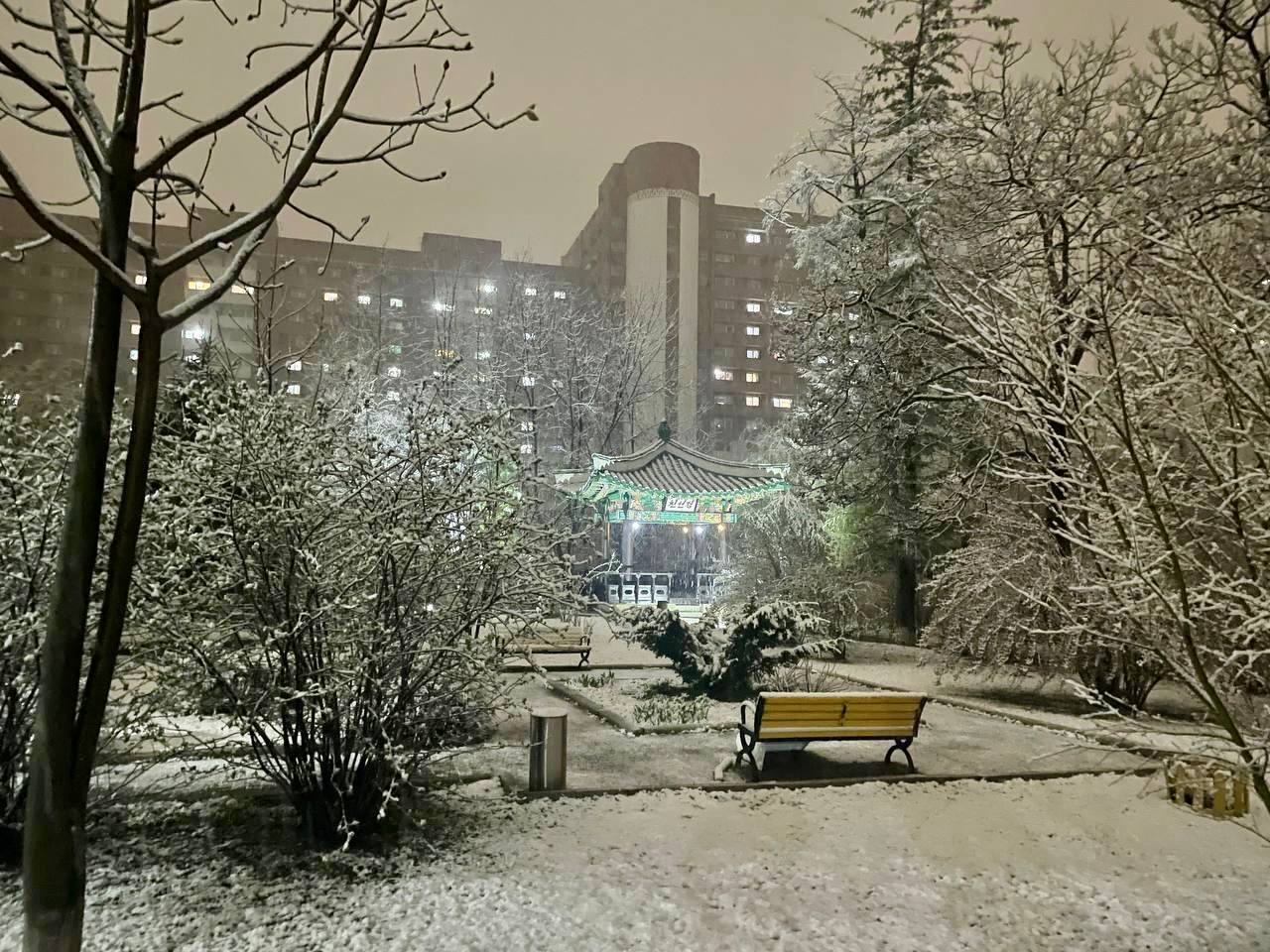 В северокорейском Пхеньяне в минувшие выходные выпало больше снега, чем зимой, рассказали в Посольстве России. На территории дипмиссии даже упало несколько деревьев, не выдержав ветра и тяжести снежной шапки.