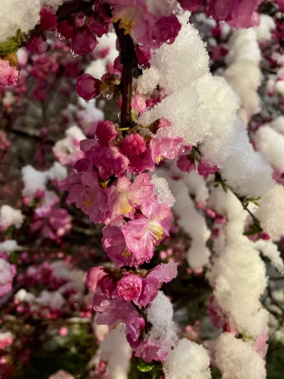 Для Сеула это первый с 1907 года снег в середине апреля, пишет Korea Joongang Daily. Температура из-за сильного ветра упала с 20 градусов до 0 всего за сутки, а уже цветущая сакура покрылась снегом.