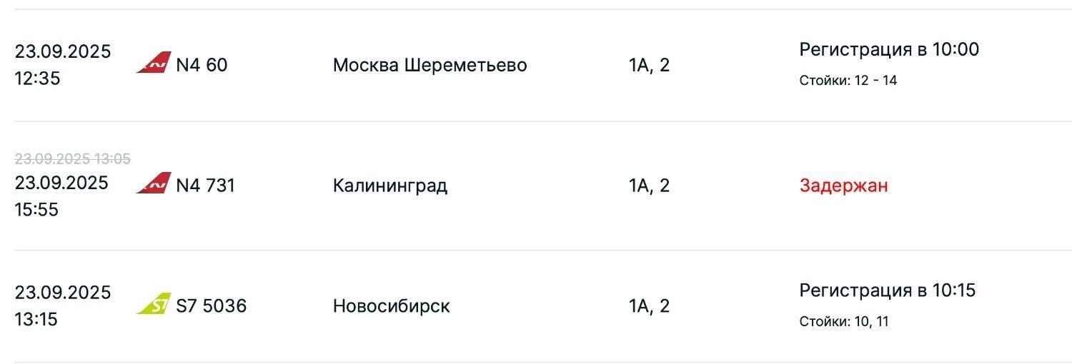 Согласно данным онлайн-табло первой воздушной гавани, на вылет задержаны самолеты до Москвы, Санкт-Петербурга и Сочи. При этом в некоторых случаях время отправления перенесли сразу на пять часов.