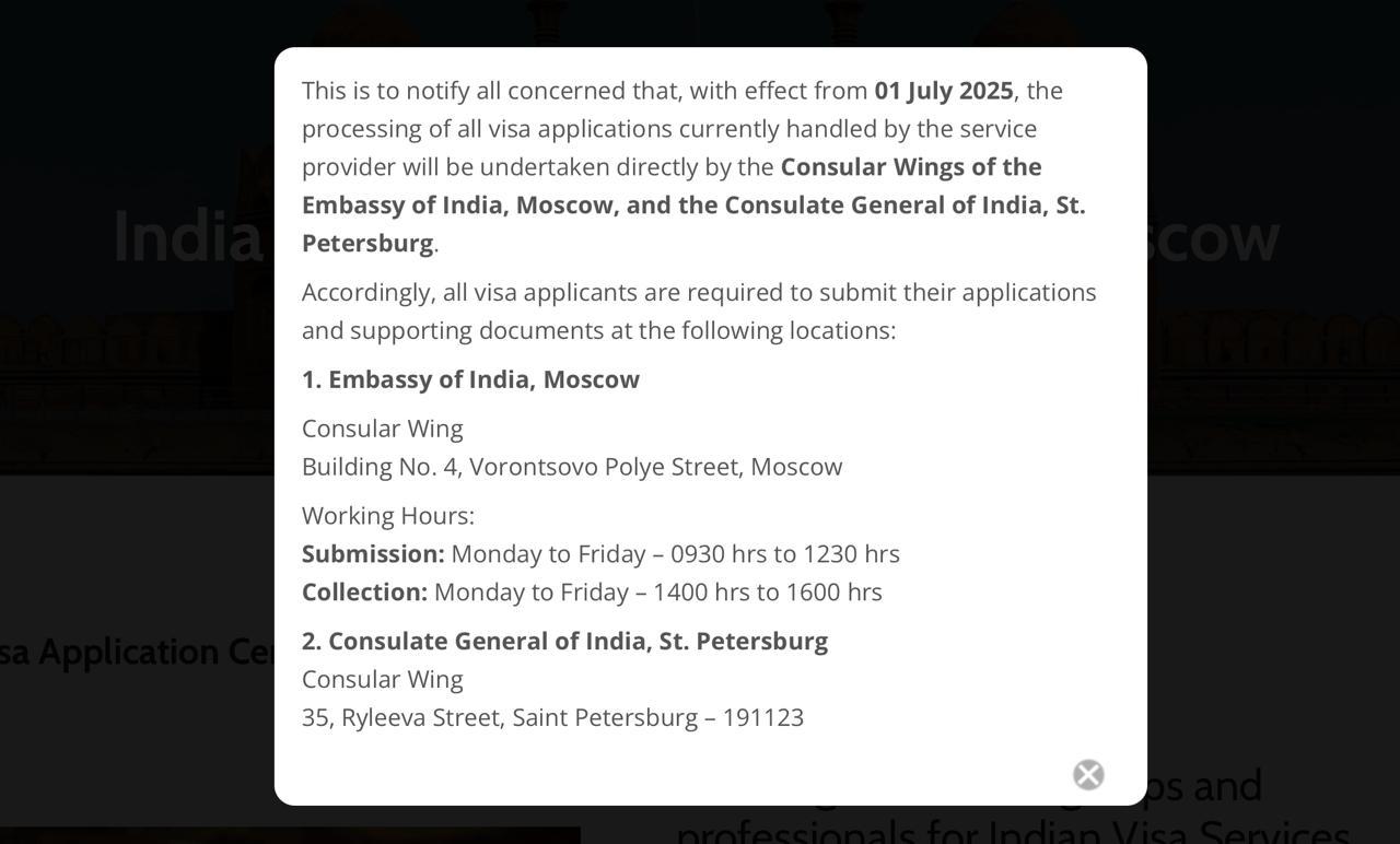 🇮🇳 Индия закрывает визовые центры в России, заметили в @uletet_1. Уведомление появилось на сайте ВЦ.