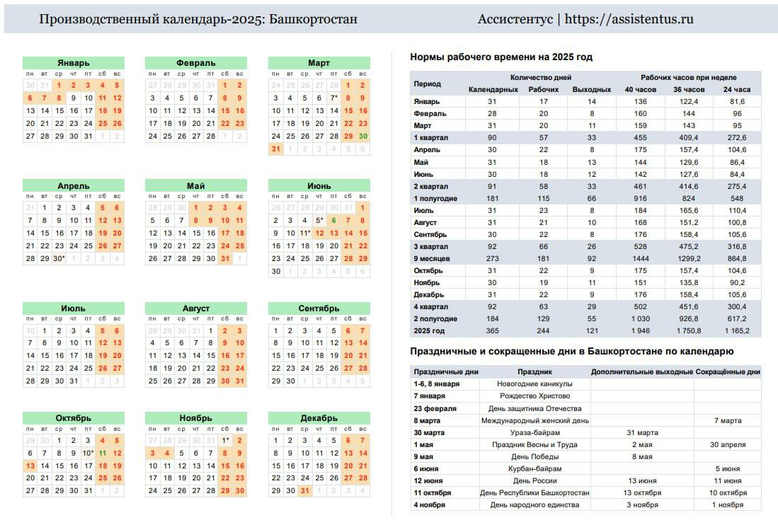 Согласно опубликованному производственному календарю на 2025 год, жители России будут отдыхать по 4 дня три раза: с 1 по 4 мая, с 8 по 11 мая и с 12 по 15 июня. А жителей Башкирии ждут дополнительные выходные в марте и июне на праздники Ураза-Байрам и Курбан-Байрам.