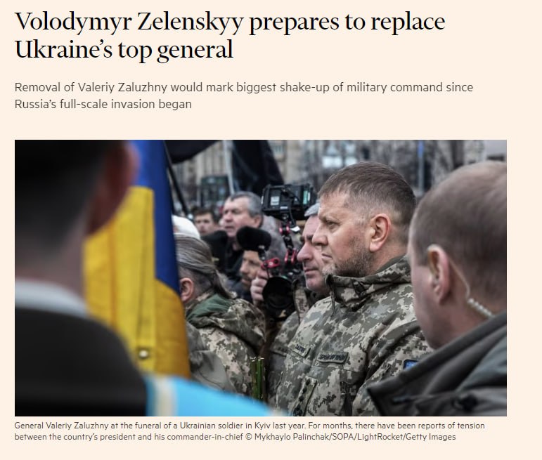 Зеленский не уволил Залужного, и теперь не сможет сделать это в течение некоторого времени после публикаций в СМИ, — Financial Times