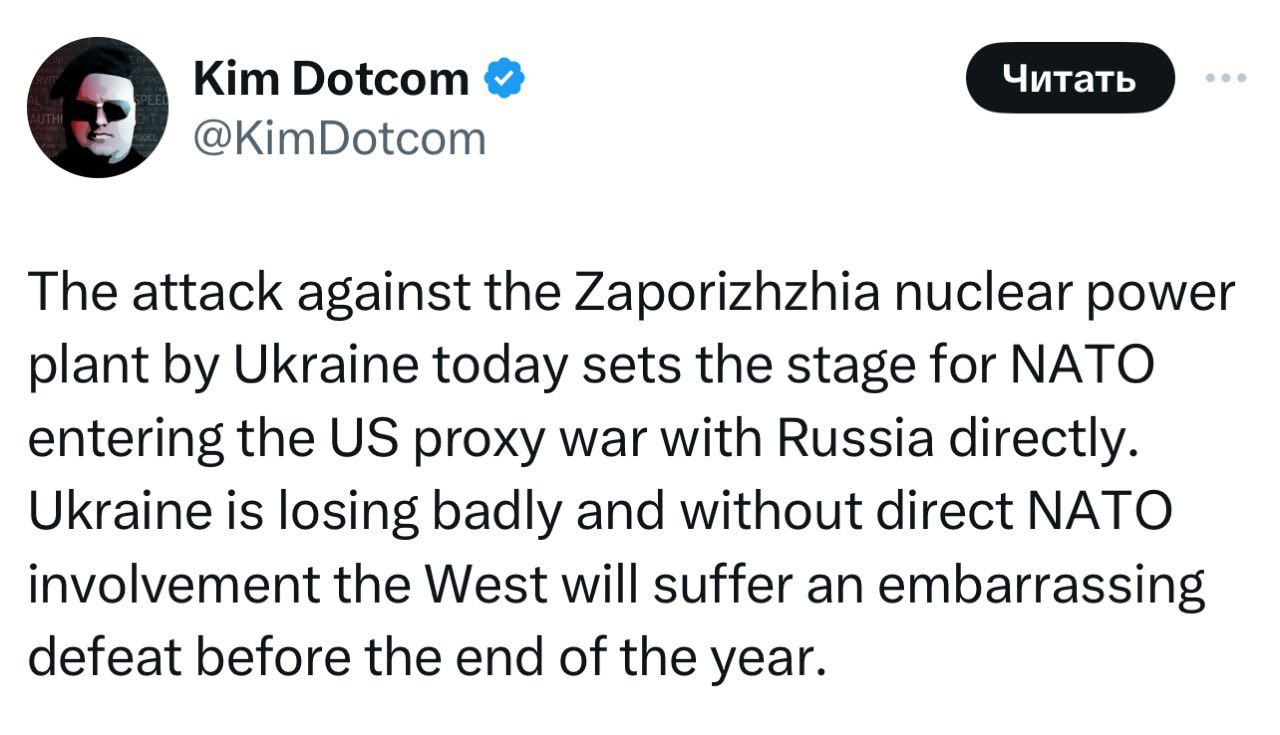 «Украина проигрывает, поэтому без участия НАТО Запад потерпит позорное поражение до конца года».