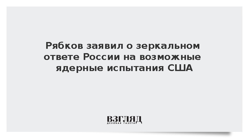 Россия готова незамедлительно ответить на возможные шаги США по возобновлению ядерных испытаний, заявил замглавы МИД России Сергей Рябков.