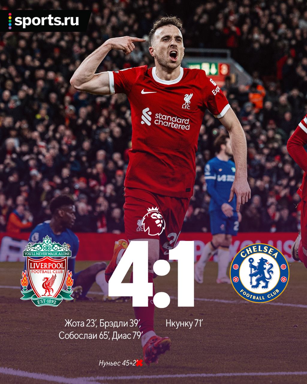 Могли забивать и больше, но Нуньес 4 раза попал в каркас ❌