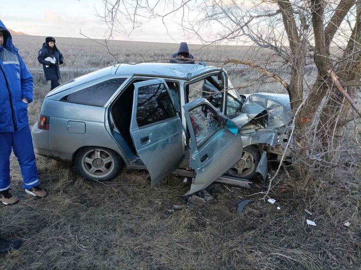 Около поселка Кушумский в дерево ударился ВАЗ-2112