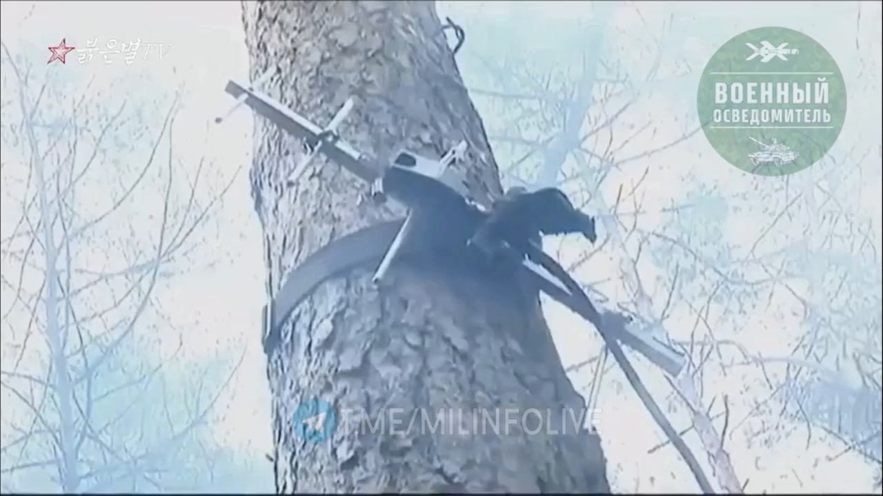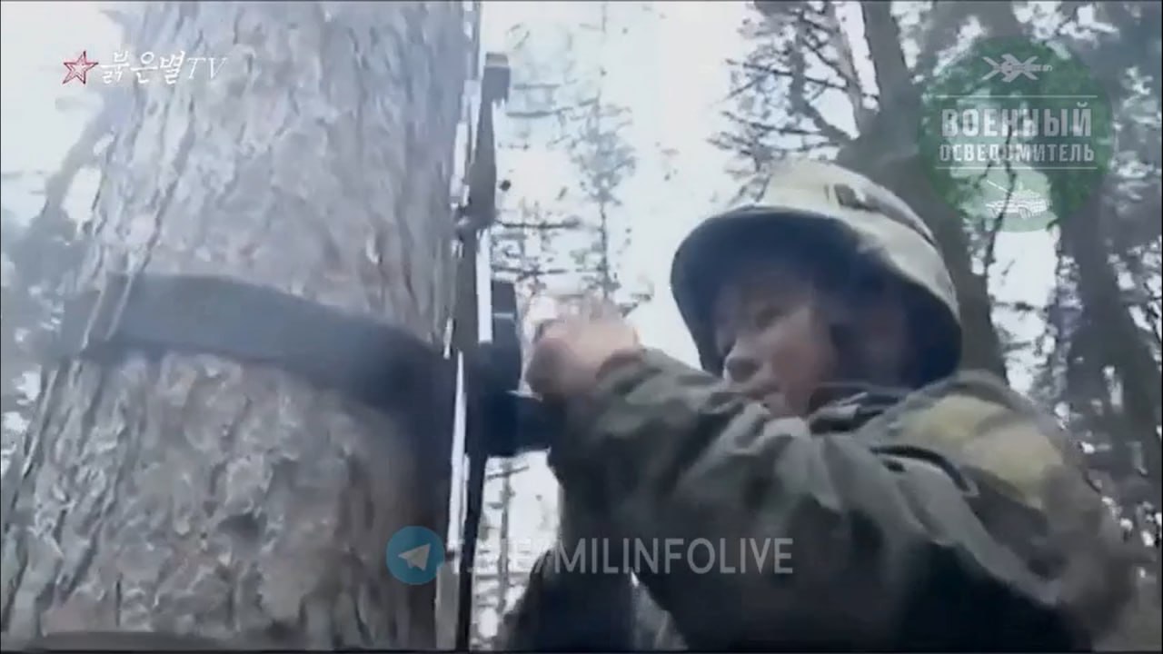 Процесс лазания по деревьям северокорейских солдат в Курской области, показанные в документальном фильме по итогам участия армии КНА в зарубежной операции.