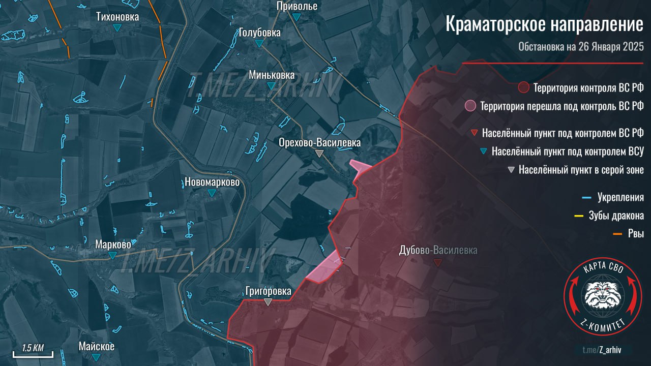 2. Продвижение подразделений ВС РФ возле Григоровки и Орехово-Василевки.