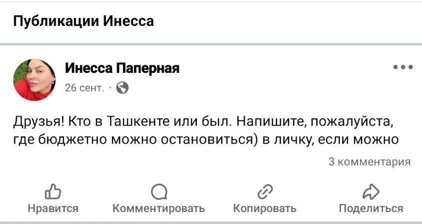◾️До поездки журналистка просила в соцсетях подсказать, где можно бюджетно остановиться в Ташкенте.