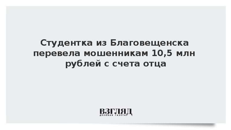 Жительница Благовещенска, учащаяся в местном вузе на втором курсе, стала жертвой мошенников, она перевела им на «безопасный» счет 10,5 млн рублей, деньги принадлежали отцу, сообщили в региональном МВД.