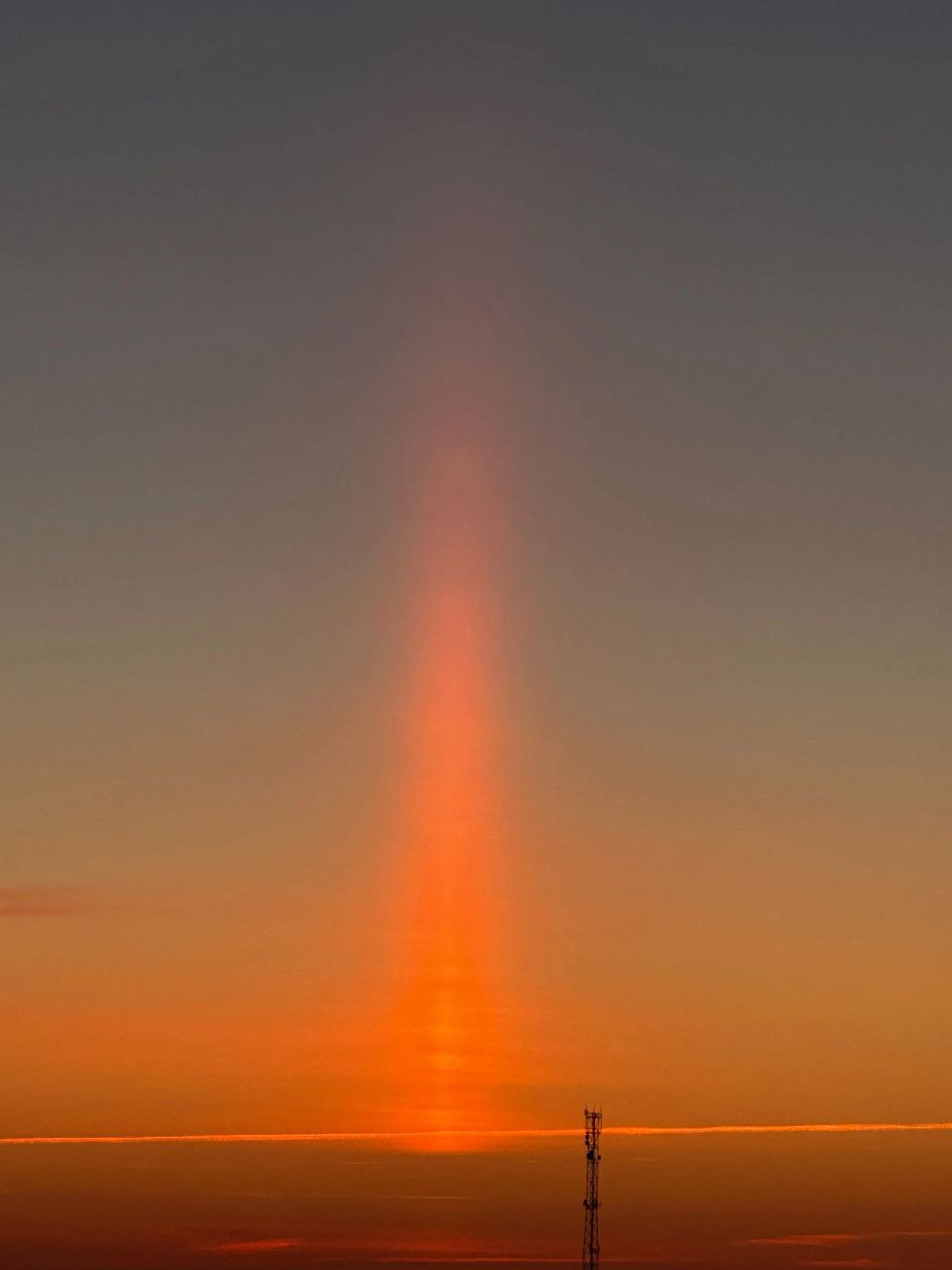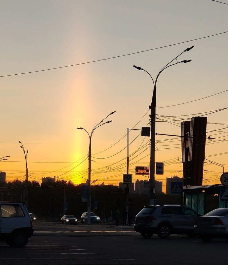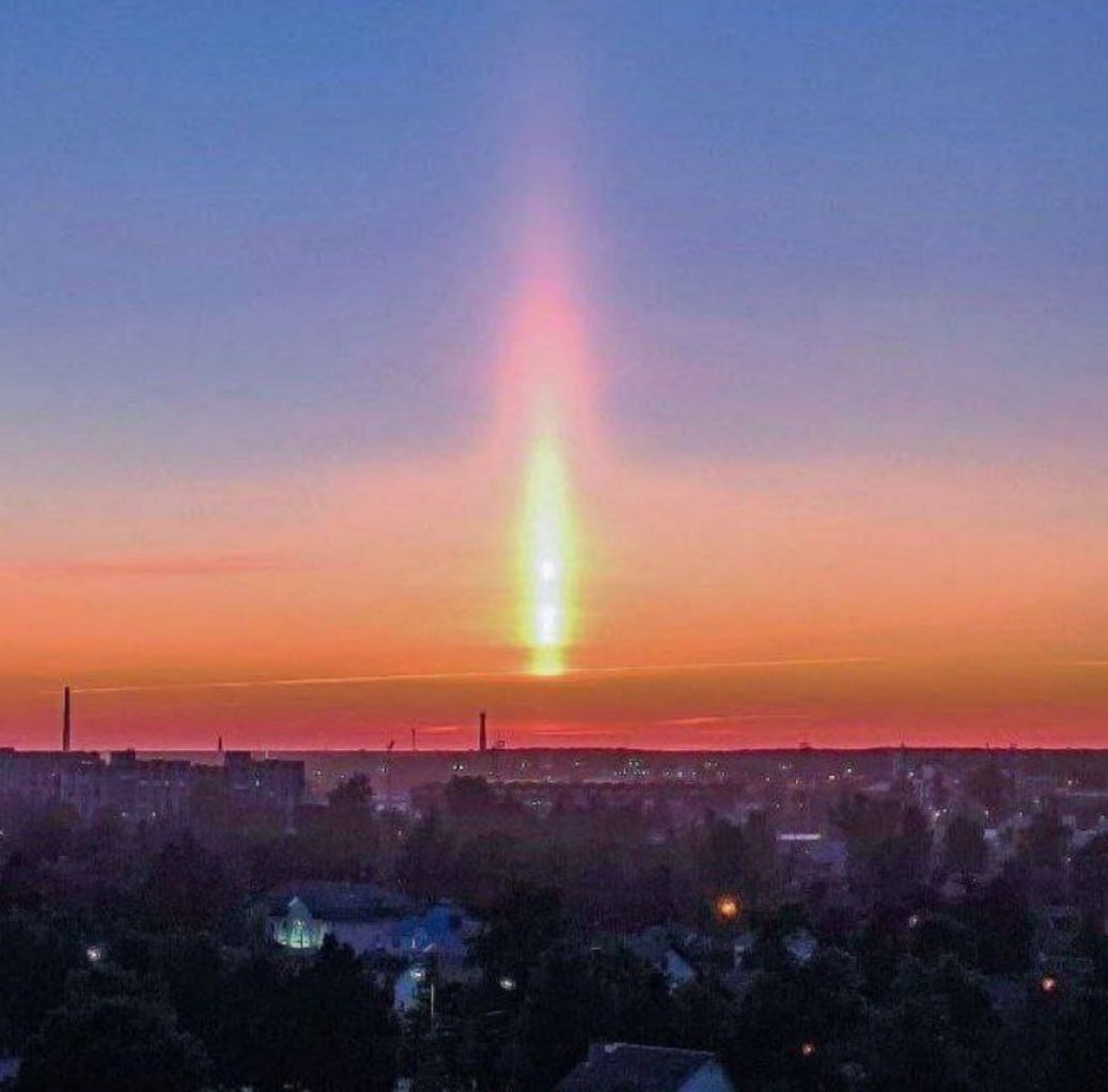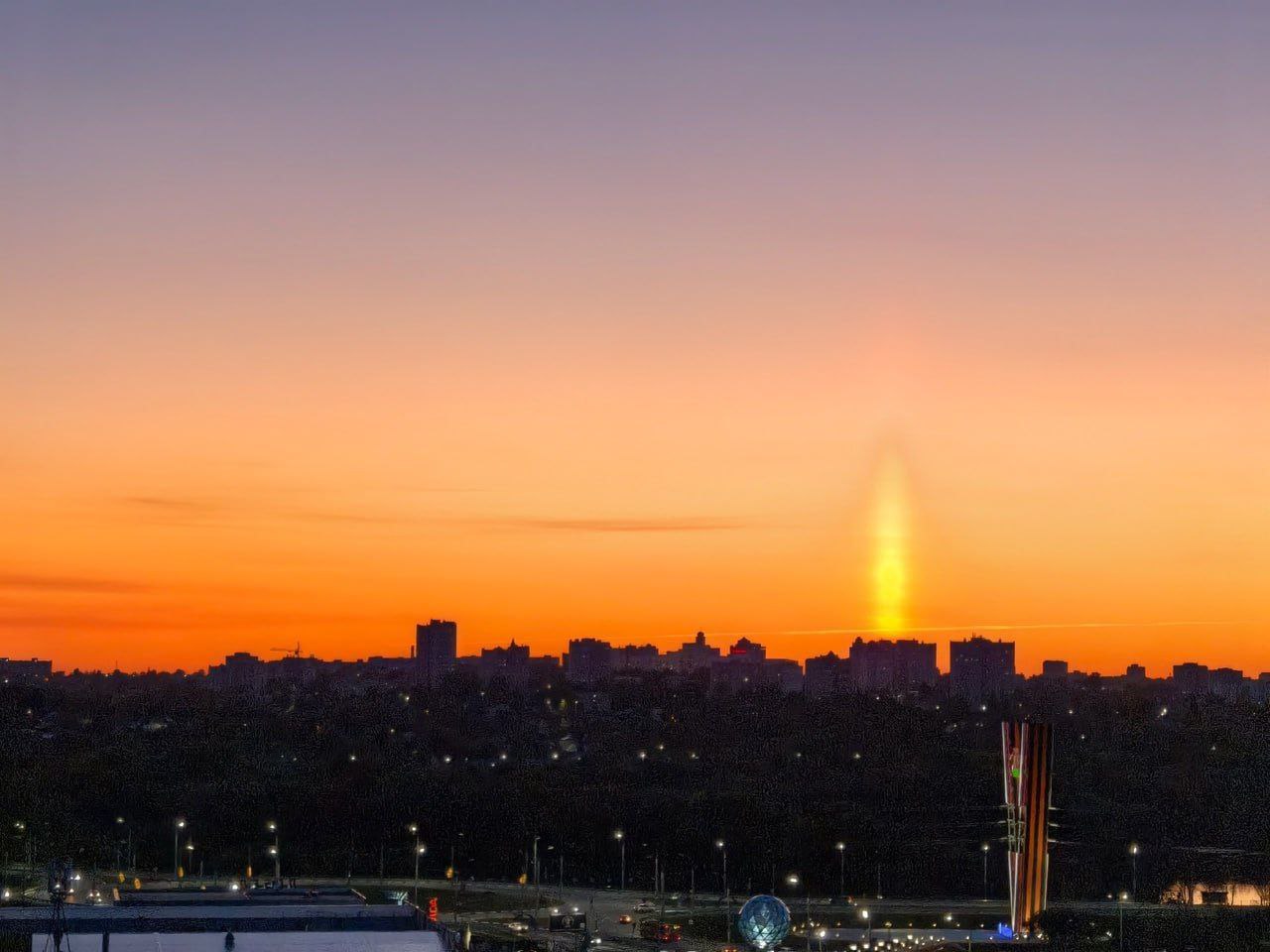 Яркий световой столб заметили на закате жители Брянска и Курска.