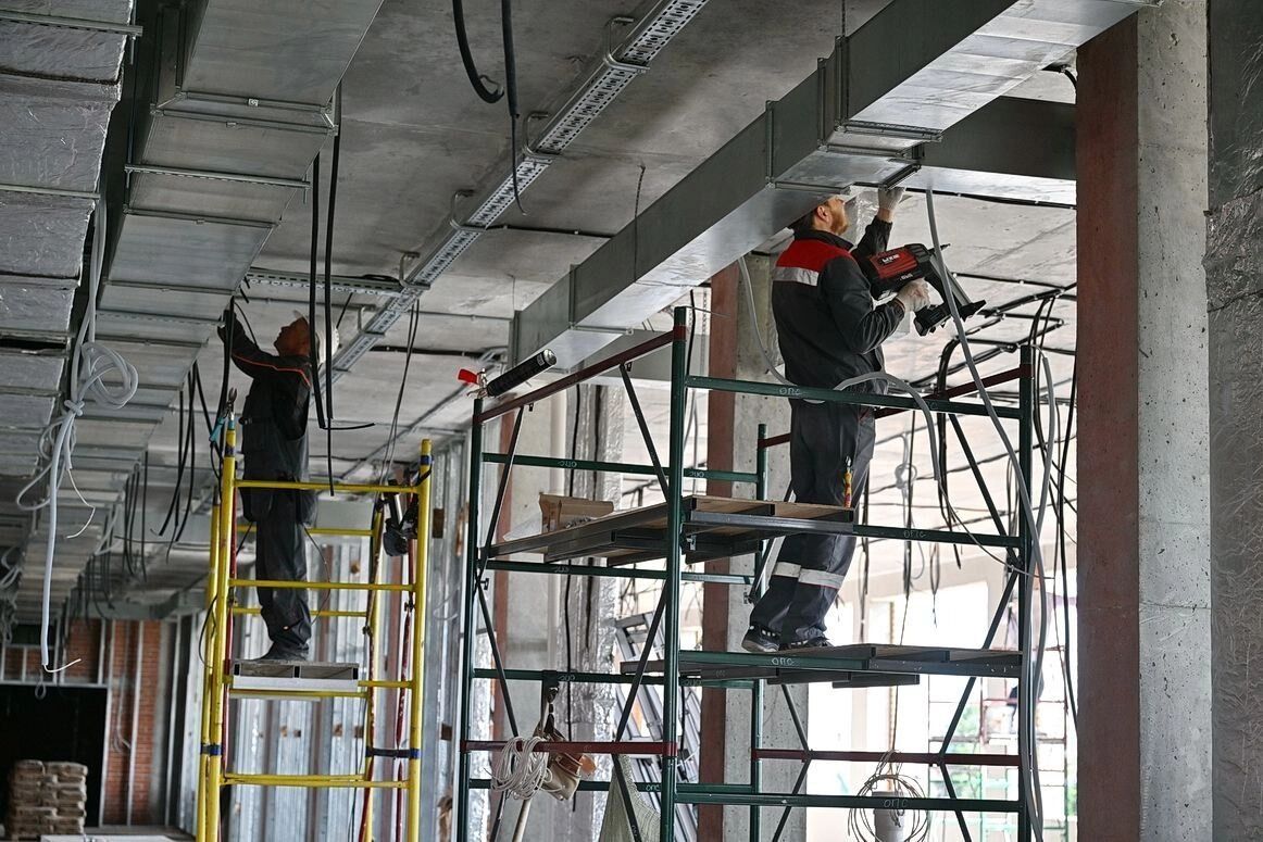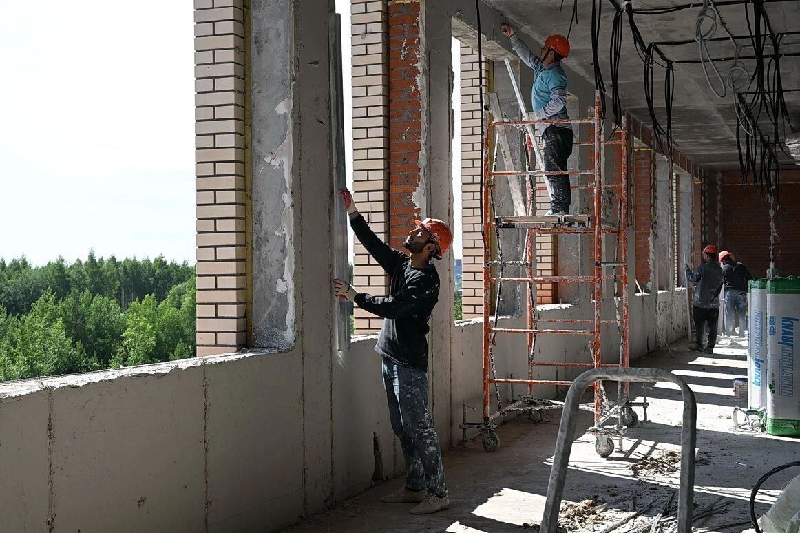 Как заявили Роману Ефимову представители подрядчика, работы идут в соответствии с графиком. Каждый день на стройке заняты 190 рабочих. Готовы контур здания и кровля, приступили к внутренним работам. Монтаж электросетей и систем вентиляции выполнен на 80%, оштукатурено 70% поверхности стен, монтируется система отопления, строители благоустраивают территорию и отделывают фасады.