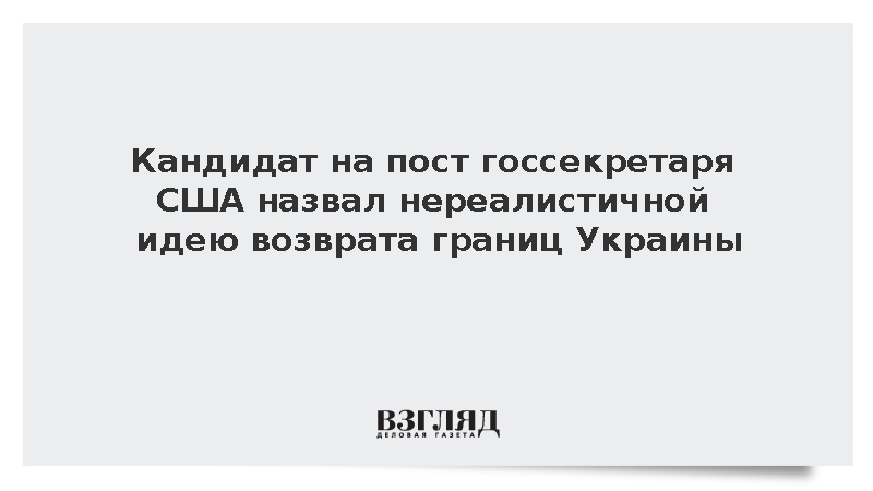Кандидат на пост госсекретаря США Марко Рубио заявил, что считает маловероятным возврат Украины к границам, существовавшим до начала российской спецоперации в феврале 2022 года.