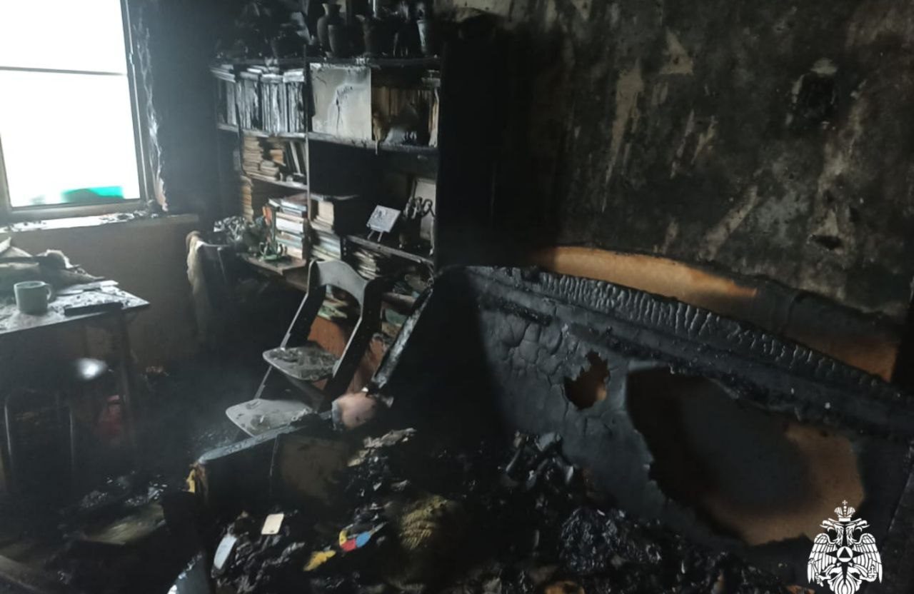Две жилые комнаты полностью выгорели внутри, стены и потолок закопчены по всей квартире, а также поврежден пол и частично закоптилась квартира этажом выше.