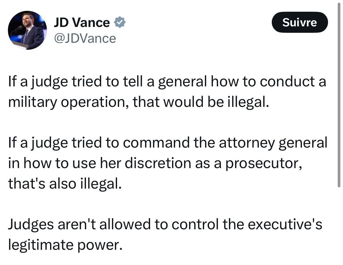 Вице-президент США Джей Ди Вэнс с гневом отреагировал на отмену распоряжений президента США судами: