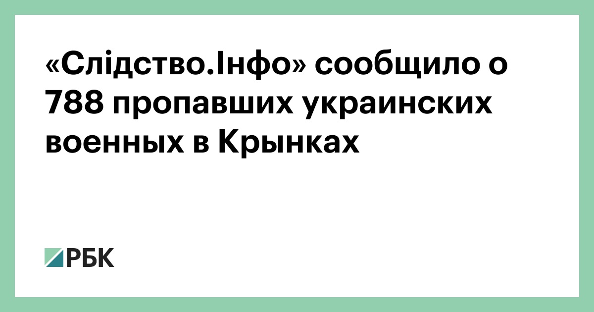 В селе Крынки пропали без вести 788 украинских военнослужащих с прошлого октября по конец июня этого года, следует из данных полиции Украины, пишет «Слідство.Інфо».