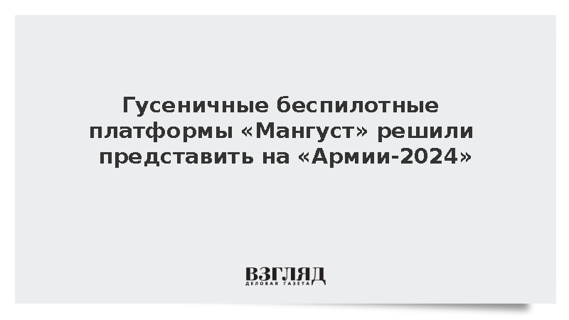 Гусеничные беспилотные транспортные средства «Мангуст» в большой и малой модификациях впервые покажут на Международном военно-техническом форуме «Армия-2024», сообщили в концерне «Алмаз-Антей».