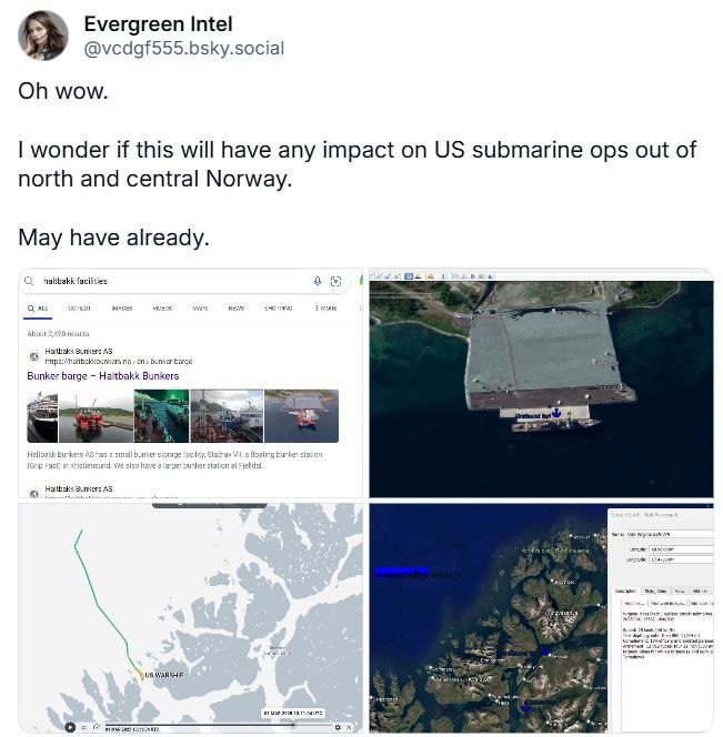 Норвежская компания Haltbakk Bunkers, одна из крупнейших компаний по производству судового топлива, объявила, что не будет заправлять американские военные суда и отказала американской подлодке класса Virginia. Подлодку попыталась дозаправиться в Норвегии и развернулась.