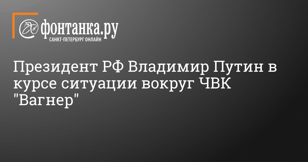 Президент РФ Владимир Путин в курсе ситуации вокруг ЧВК "Вагнер" и основателя компании Евгения Пригожина, передаёт 23 июня ТАСС со ссылкой на пресс-секретаря главы государства Дмитрия Пескова.