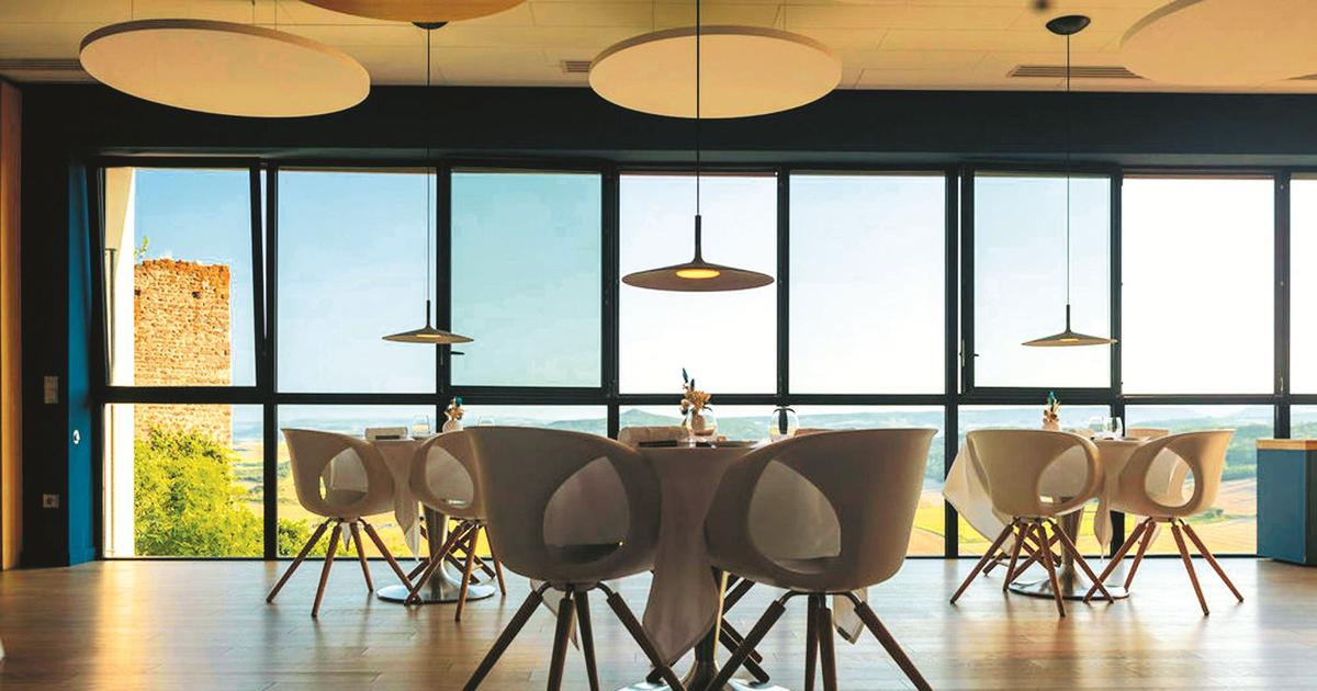 Une seule et même salle, deux ambiances - tantôt bistrot, tantôt gastronomique -, un panorama unique à tous les sens du terme qui vous coupe le souffle. Assis à 800 mètres d’altitude chez Origines, au Broc (Puy-de-Dôme) vous avez «vue sur l’Unesco», plaisante le patron, Adrien Descouls. La chaîne des Puys, inscrite au patrimoine mondial depuis six ans, fait partie des mises en bouche. Nous gardons volontairement le meilleur pour l’assiette. Avant de nous attabler, un mot encore sur l’établissement. Il comporte à présent, au pied des ruines du château fort, plein de chambres de très grand confort où les enfants sont bienvenus. L’agence d’architecture clermontoise Carré vert a supervisé, sous la houlette de Christelle Anicet, toute la restructuration et la décoration de l’hôtel-restaurant. À l’extérieur, Aline, la jardinière, entretient un potager de 2 200 mètres carrés qui fournit herbes aromatiques, courges, houblon, tomates, mélilot, etc. Une mare creusée au milieu des plantations, alimentée par les précipitations, assure une étonnante biodiversité et crée un microclimat propice à la fertilité. Bref, tout est luxe, calme et durabilité.