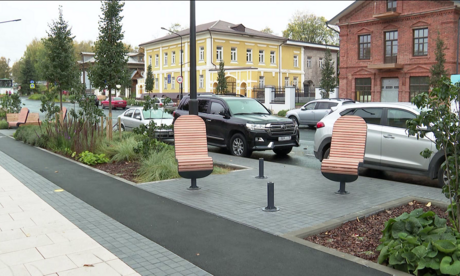Конструкции вращаются вокруг своей оси. Кресла выполнены в том же стиле, что и широкие скамьи.