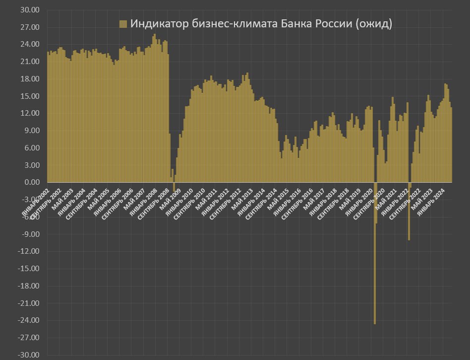 Банк России отмечает резкую деградацию индикатора бизнес-климата в России, снижение началось с апреля и продолжается в июне.