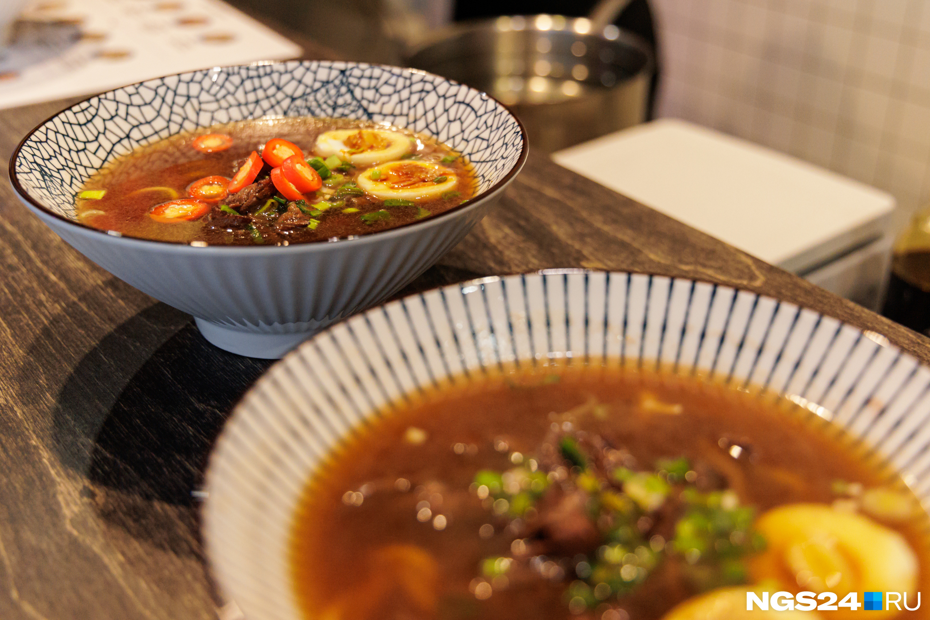 В московском меню традиционный удон, рис и жареная лапша, а также вотоны, которых в Красноярске пока нет.