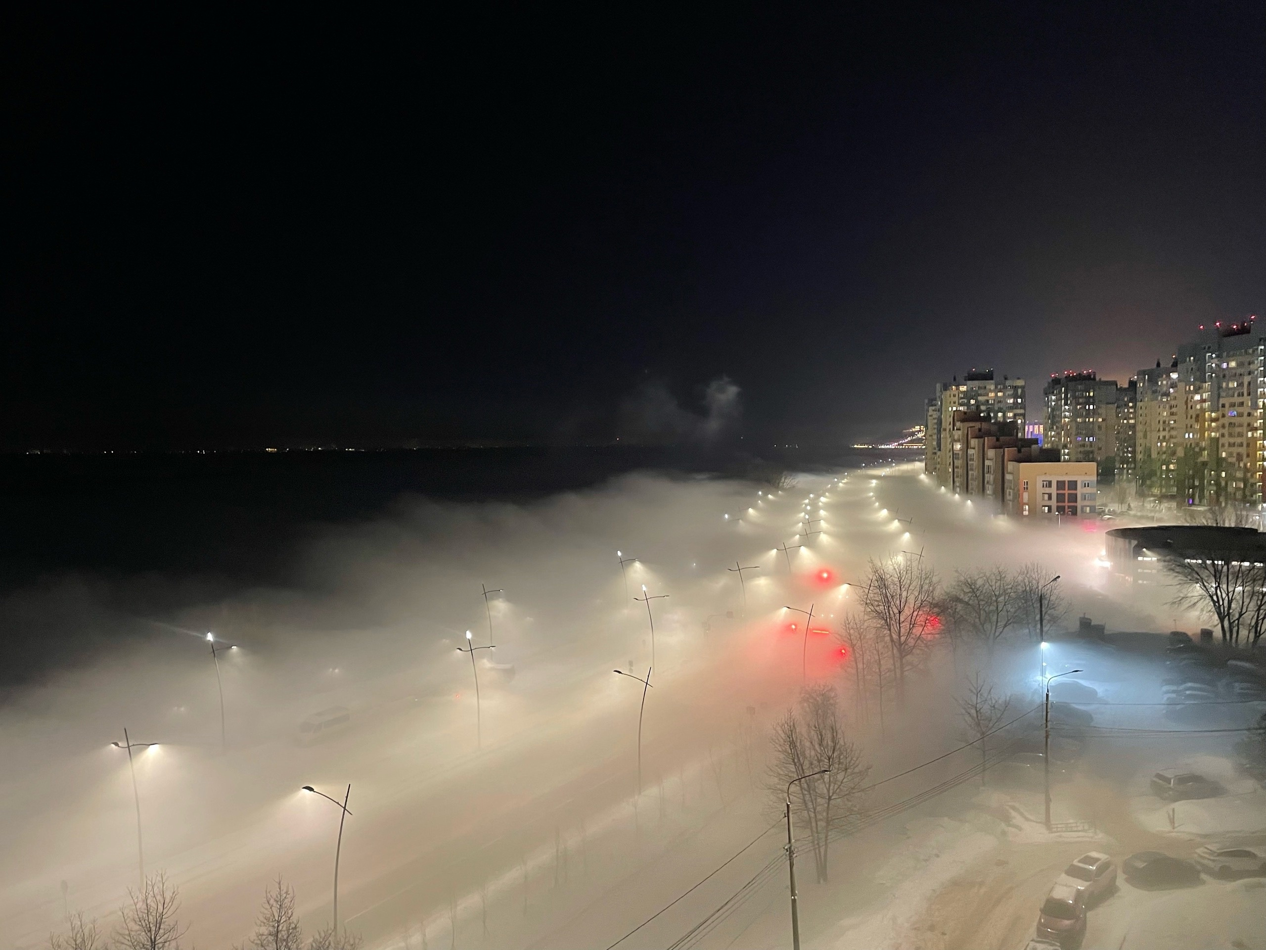 Главной точкой красивых фото стала Мещера, а точнее — территория Волжской набережной. Снимки сделали из окон жители близлежащих домов. На некоторых видно, что через пелену можно разглядеть только огни фонарей — всё остальное заволокло туманом. Это выглядит завораживающе и таинственно.