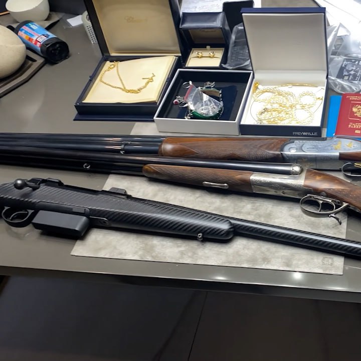 Во время обысков, судя по кадрам ФСБ, нашли большую сумму наличных, оружие и дорогие авто.