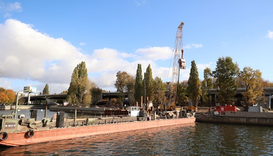 Здесь возводят новую пешеходную переправу – Философский мост, который будет разводным.