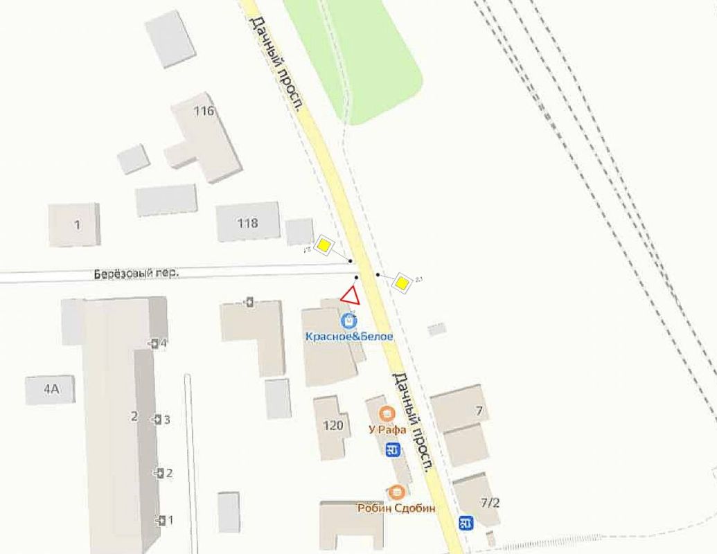 Знаки «главная дорога» и «уступи дорогу» установят на пересечении Берёзового переулка и Дачного проспекта.