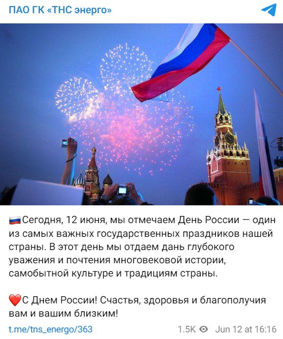 «ТНС энерго» в своём Telegram-канале разместила пост, где поздравила жителей страны с Днём России. Народу не понравилось.
